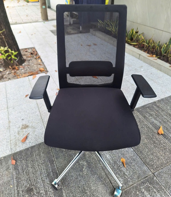 Ghế nhân viên đệm tựa bọc vải, chân ghế bằng nhựa (ghế không tay) Mới: 90%