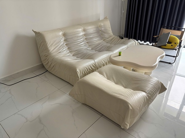 KT: 2.35×1.6×0.8(m) Chất liệu: Nệm Màu sắc: Trắng Kem Tình trạng: Mới 99%